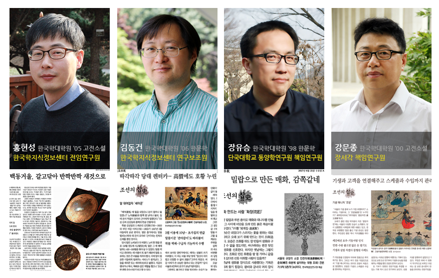 조선시대의 다양한 직업을 소개하고 그들의 삶을 조명하는 ‘조선의 Job史’연재를 동아일보 지면을 통해 연재합니다. 한국학대학원 출신의 젊은 연구자 4명이 모여, 사료의 기록을 추적하면서 그에 얽힌 전통시대 직업 이야기와 생활사를 흥미롭게 소개합니다. 매주 월요일 동아일보 문화면을 통해 연재되는 ‘조선의 Job史’ 칼럼에 많은 관심 바랍니다.