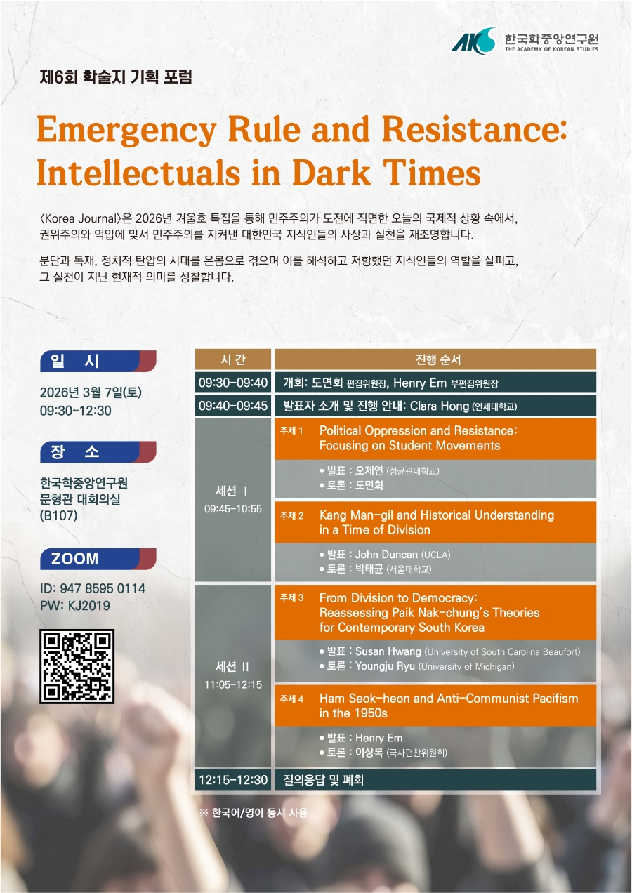 주 제 | Emergency Rule and Resistance: Intellectuals in Dark Times