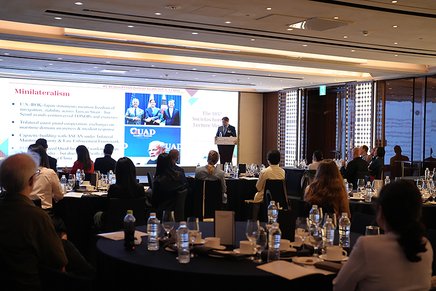 30 сентября (вторник) 2025 г. в отеле Westin Chosun Seoul Отдел поддержки зарубежных корееведческих исследований Управления международных отношений Академии корееведения провел 105-ю лекцию серии «Социэтас кореана». Профессор Лейф-Эрик Изли (Leif-Eric EASLEY, Женский университет Ихва) прочитал лекцию «Дипломатическая диверсификация Сеула и отправка достоверных сигналов (Seoul’s Diplomatic Diversification and Sending Credible Signals)», в которой он рассмотрел дипломатическую стратегию Республики Кореи и ее роль в регионе в свази с быстро меняющейся политической ситуацией.